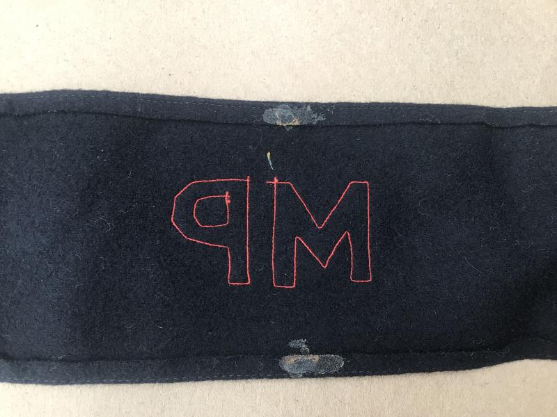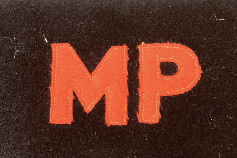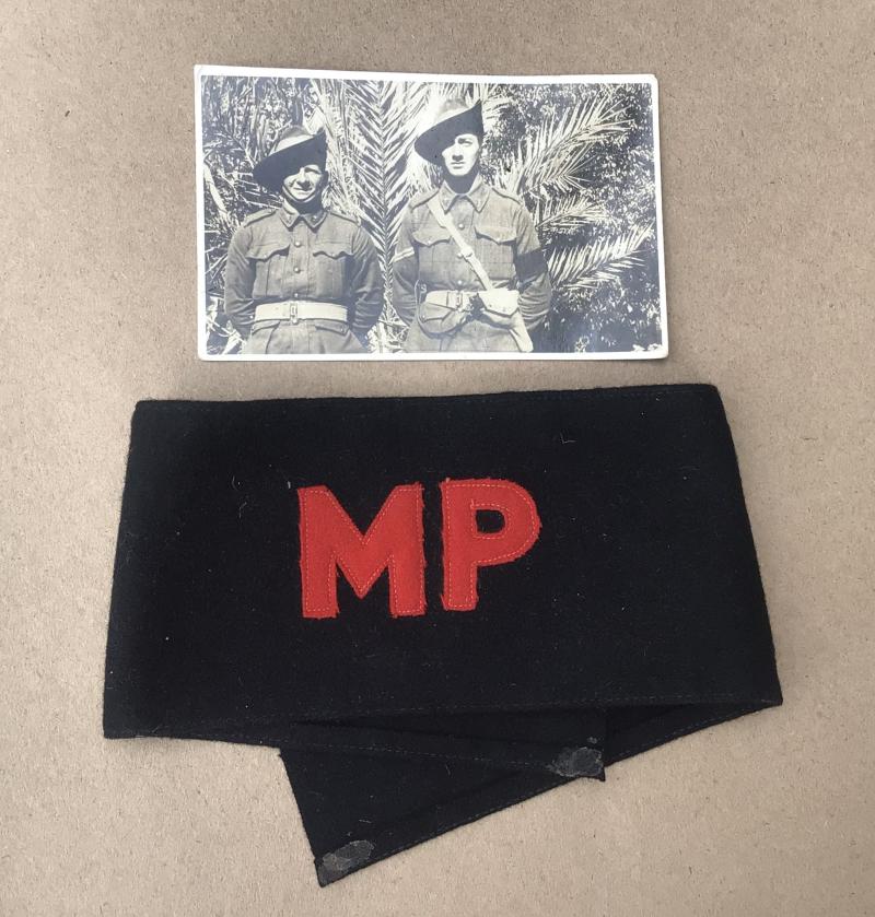 Black wool with separate applied red wool felt “MP”. Comes with an original photo of an Australian Provost NCO wearing same such brassard.