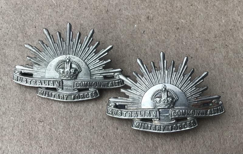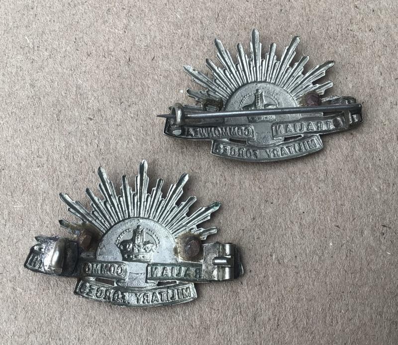 Australia c.1905-1912 White Metal Rising Sun Collar Badges