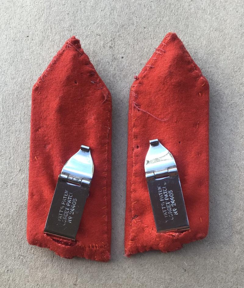 Matched pair with brass kings crown ACMF buttons. Detachable pair with spring clip reverse to each. Suit Brigadier or Colonel tunic.