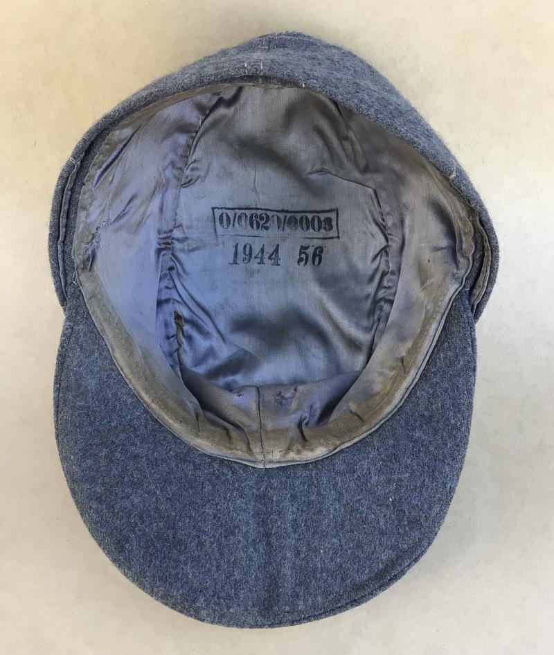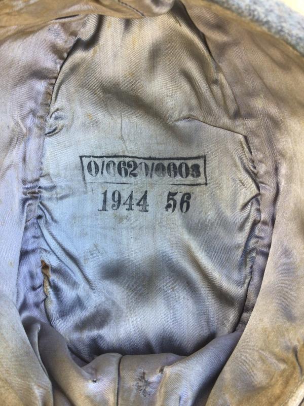 Lovely original late war example in very nice condition. Has separate embroidered cap eagle and cockade. Full rayon lining with depot ink stamps and dated 1944.