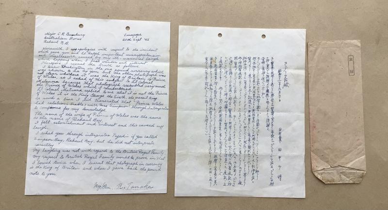 A rare set of hand written and typed correspondence relating to a Japanese General held as POW on trial in the war crimes tribunal at Rabaul 1946 and an Australian officer of ghe 2/24th Infantry Battalion.
