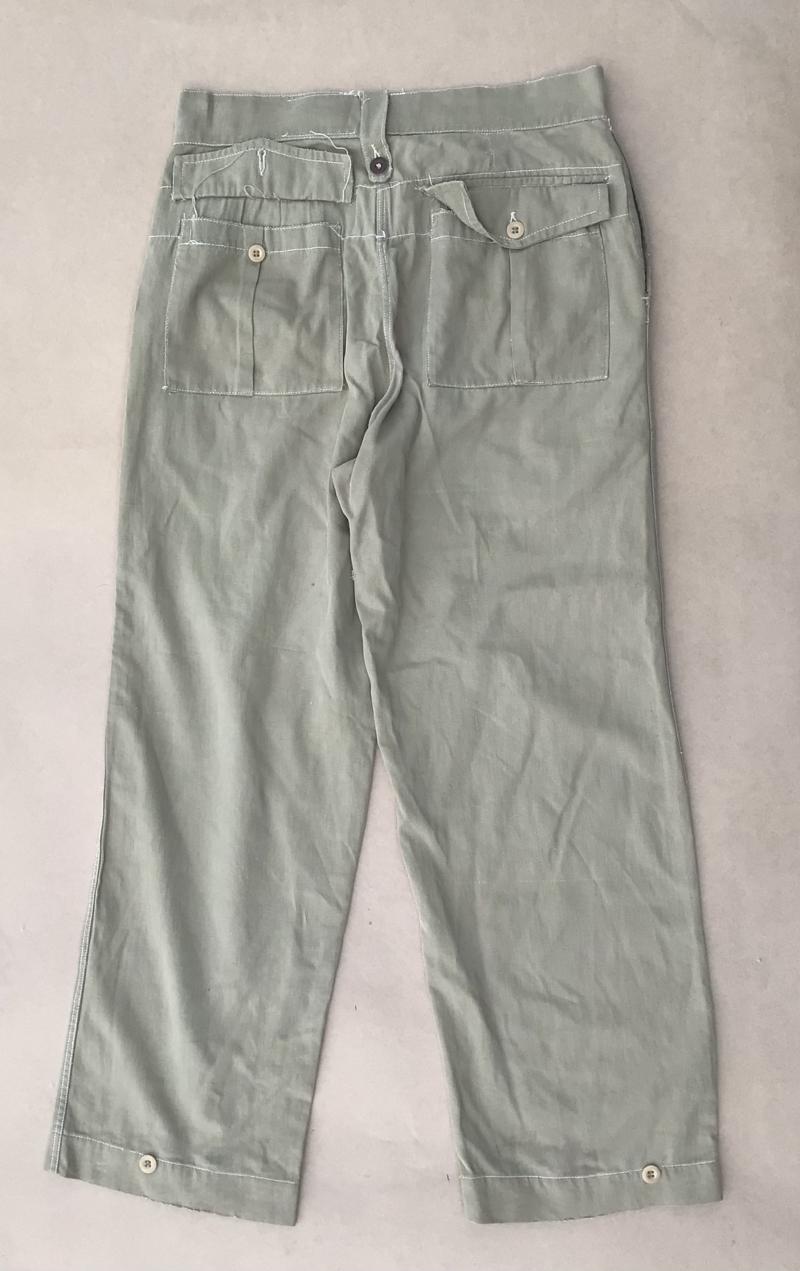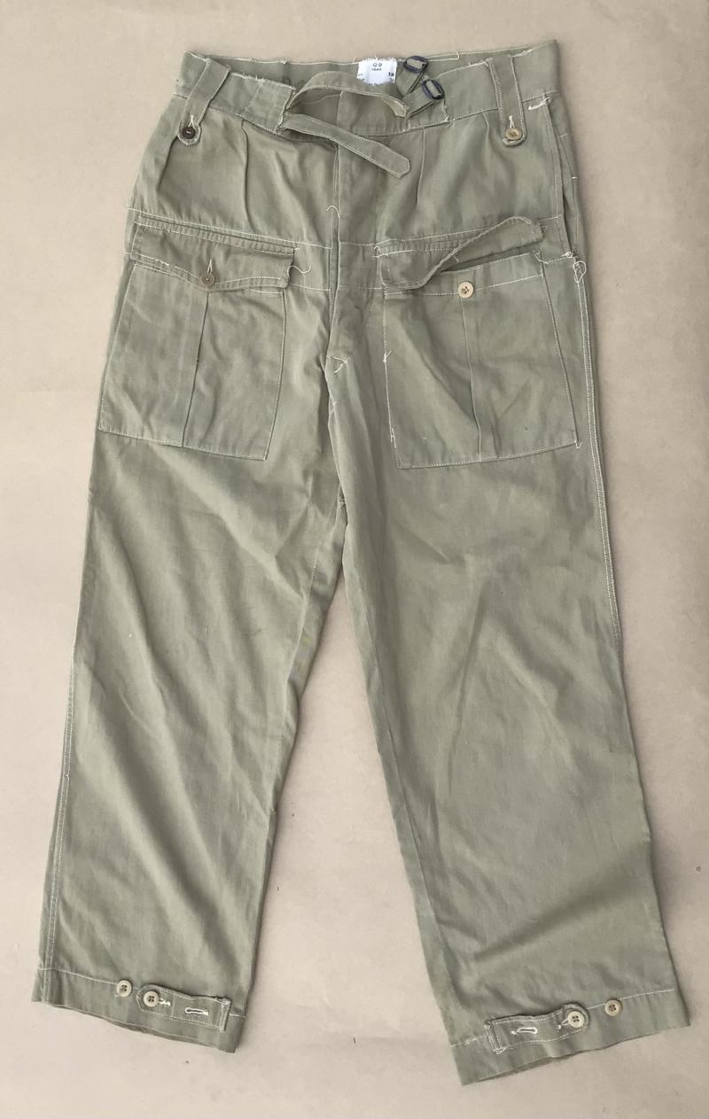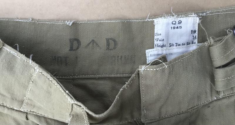 Khaki cotton drill general service trousers. Very good condition. “D arrow D” acceptance ink stamp. Clearly dated 1945.