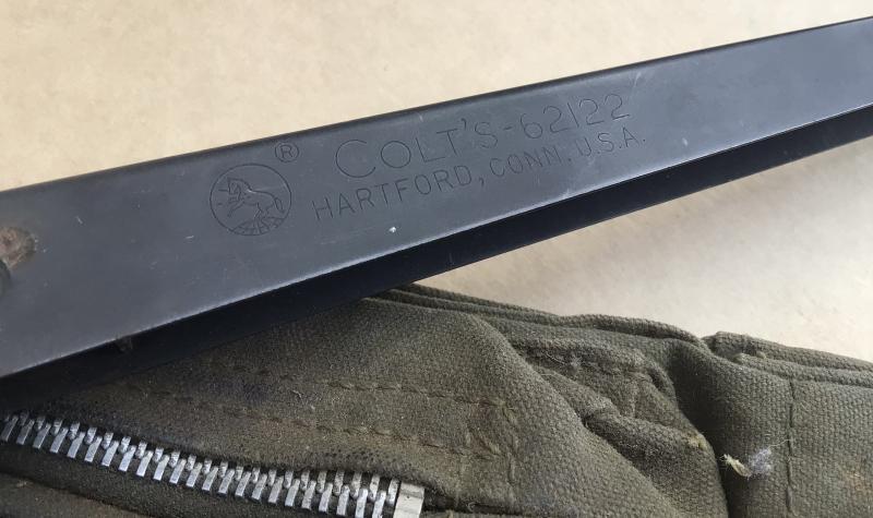 Bipod for M-16 make a marked by Colt . Jungle green canvas pouch, marked US the top zipper pouch with no contents.