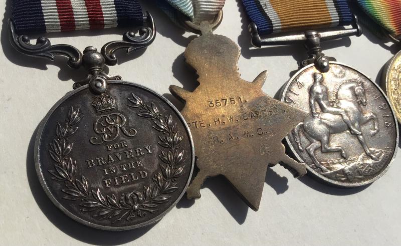 Military Medal ( GVR) , 1914-15 Star, British War Medal and Victory Medal. All correctly impressed “35761 PTE H W CARTER RAMC”.