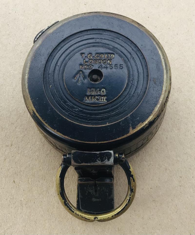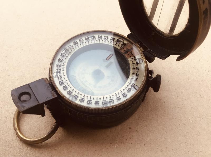 Blackened brass case. London maker and dated 1940. The lid cover a bit tight to open and squeaky. The inside dial not working very well due to having lost some of the internal liquid. Still a good static display item.