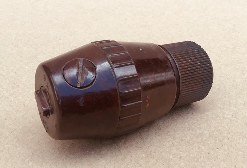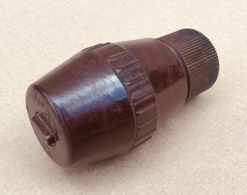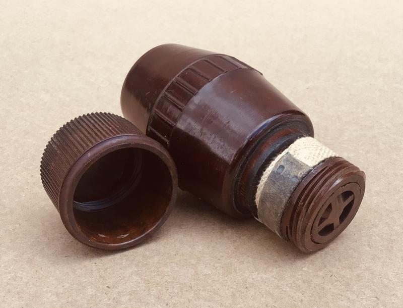 Rare Australian made example in brown Bakelite. British versions were made in black Bakelite. Comp,etc with screw cap and tie Inert