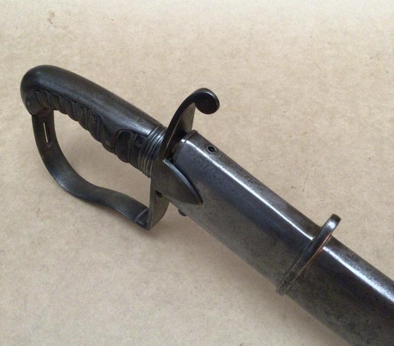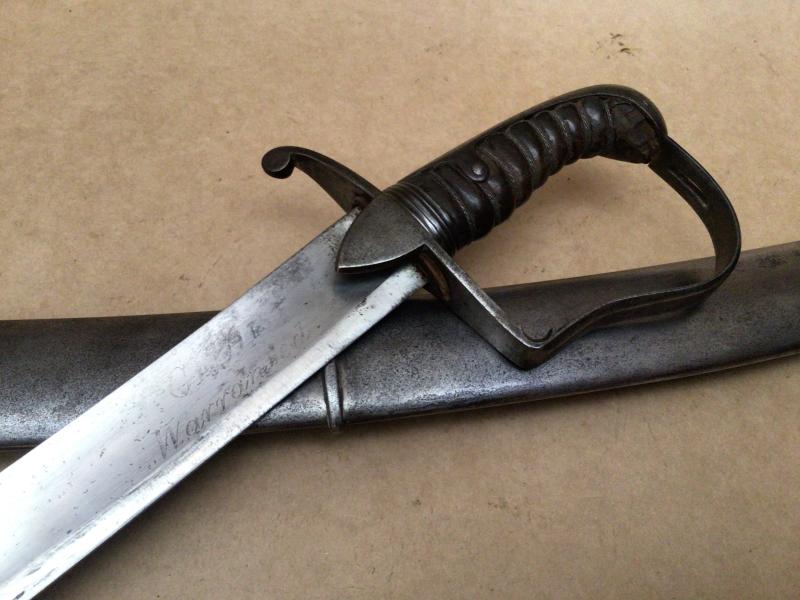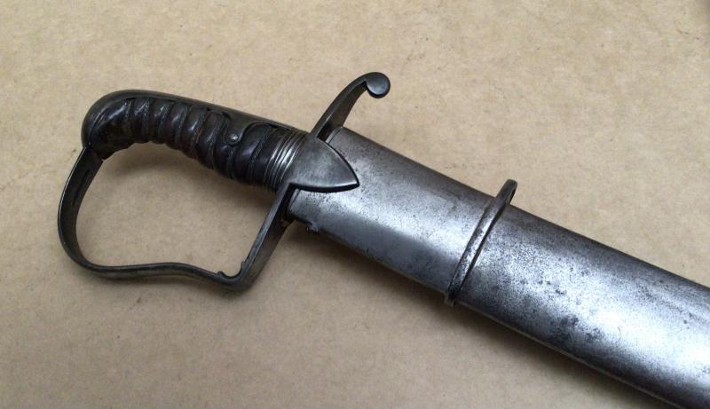 A good example of the officers pattern with leather grips. A lovely bright broad blade with "Gill is warranted" acid etched into the blade.