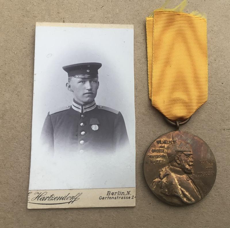 Original full size medal together with an original small CDV photograph of a soldier wearing such medal. Approx 110mm x 57mm.