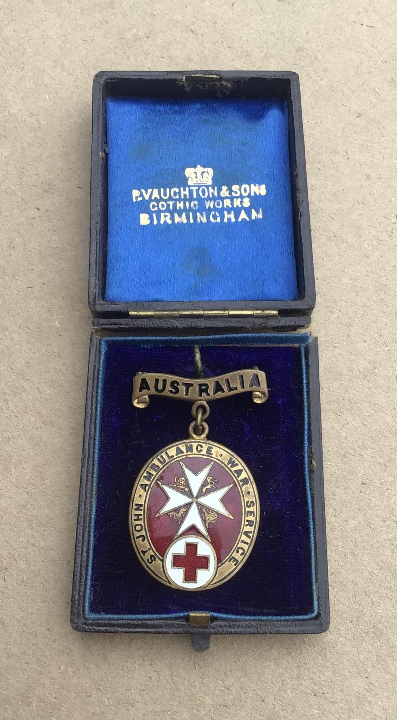 Together with a very rare Great War period BRCS /St.Johns Ambulance War Servcie Badge. “Australia” top bar. The reverse with official number and engraved with the recipients name.