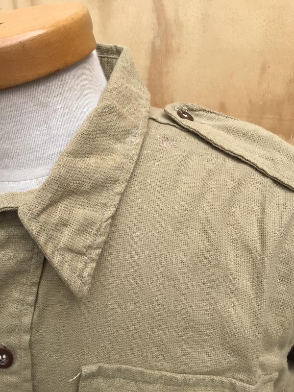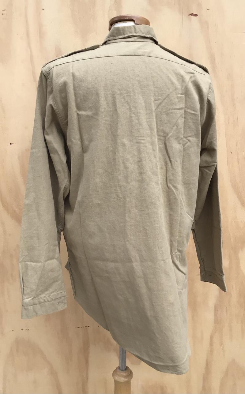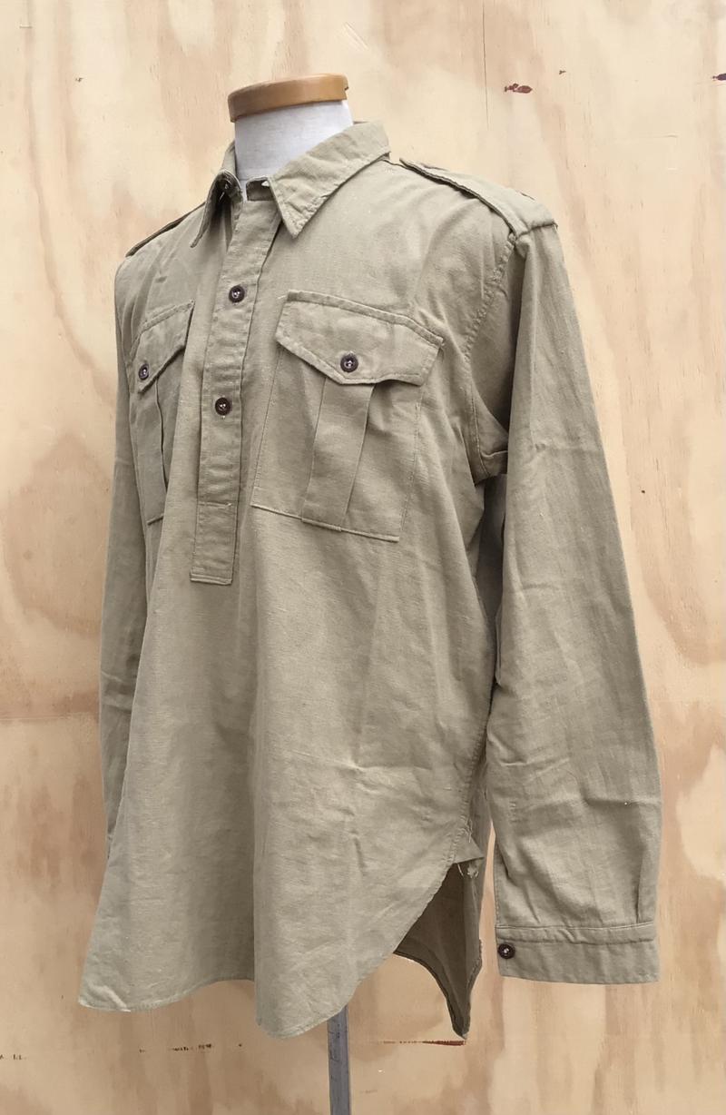 A nice example. Khaki Aertex cotton pull over type shirt. Has a small repair to the top left shoulder and a few small stain marks in the same area. 1943 dated.