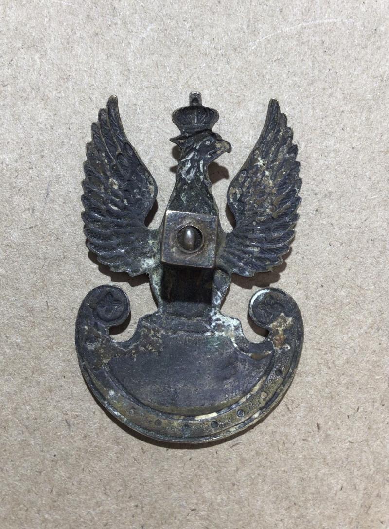 Screw post reverse. Die struck brass. 55mm. Light wearers initials scratched into the shield below the eagle. “JWP”.