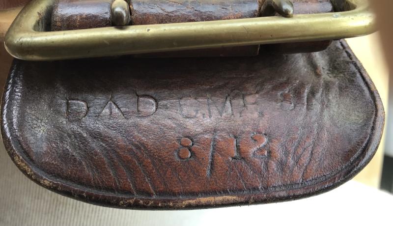 Brown leather with double matching cross straps. The leather nice and supple. The buckle tab clearly marked with “D” arrow “D “CMF” “SA” (South Australian Militia) and dated 1912. Belt extends to approx 1100mm.