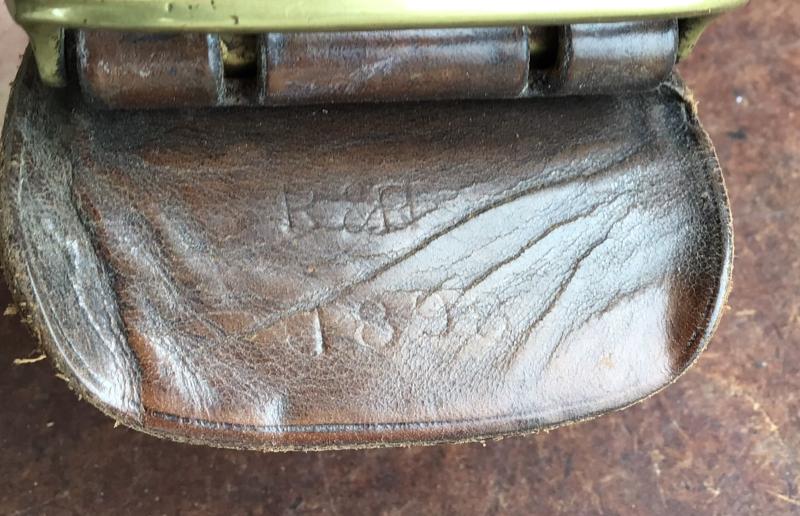 Matching dark brown leather belt and double cross straps. The buckle tab dated 1896 or 1898, hard to read. Good supple leather. The belt extends to approx 940mm.