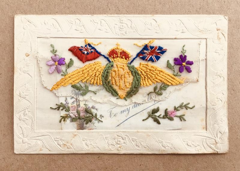 Original Silk embroidered postcard displaying the RFC Pilot wings.