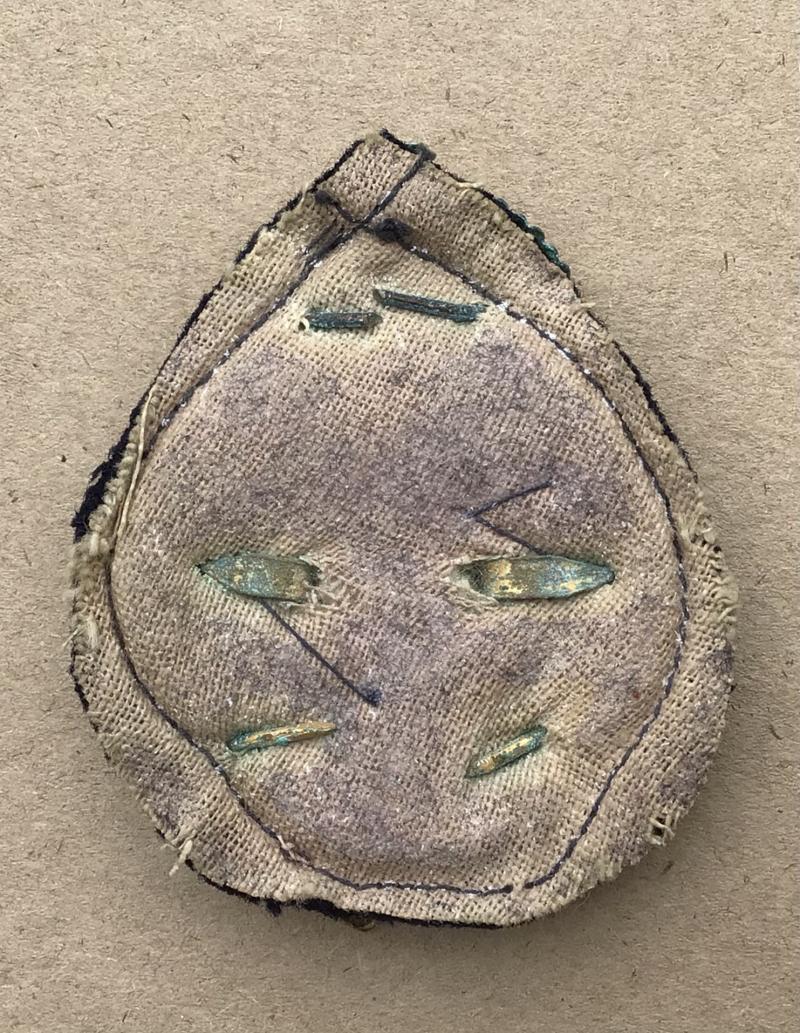 Wartime economy pattern on padded wool backing. Light corrosion to wing points.