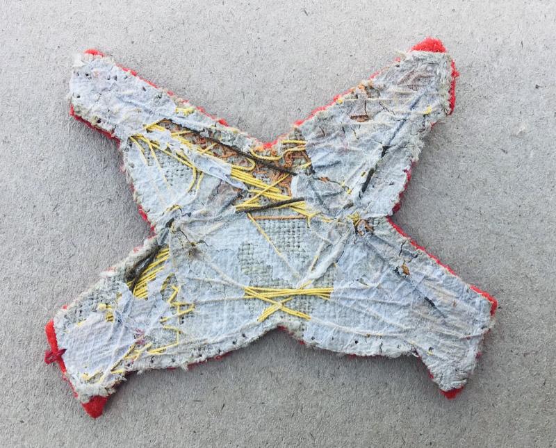 Silver bullion on scarlet wool.