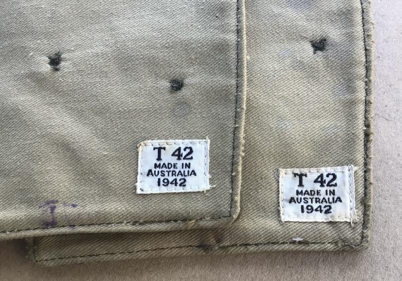 Khaki wool serge. Matched pair left and right. Made in Tasmania and dated 1942. These are getting hard to find.