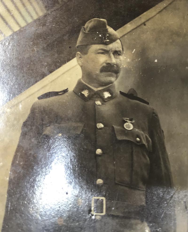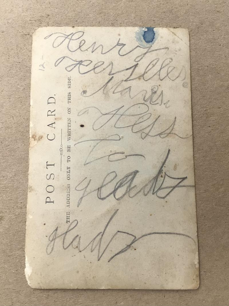 Full length picture of a member of the 6th (Victorian) Australian Infantry Regiment (1900-1912) period wearing a Brassy Medal. Given he’s wearing a pattern 1903 belt I’d date it c.1905. Scribble pencil to reverse. Tatty corners.