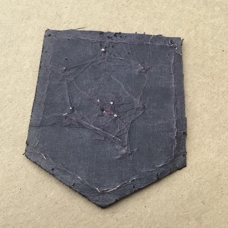 Officers example, probably Australian theater made. Bullion embroidered on blue satin background on wool. Approximately 80x95mm.