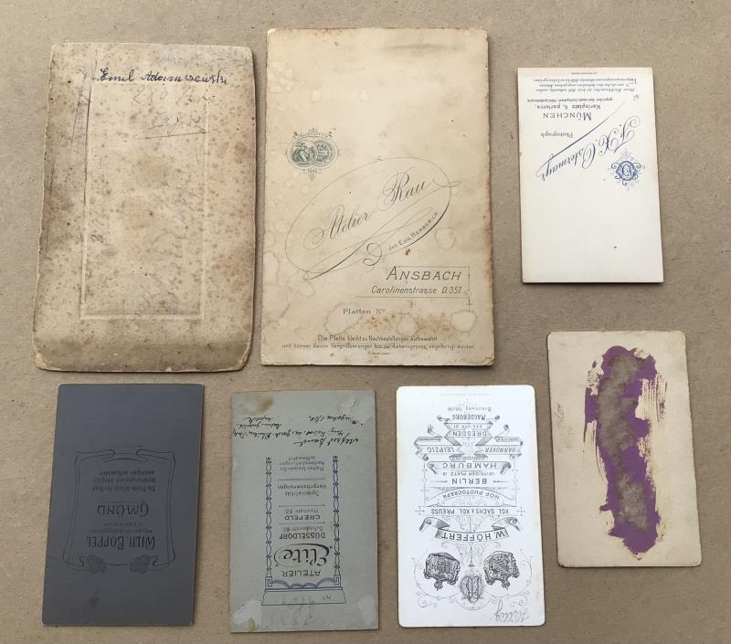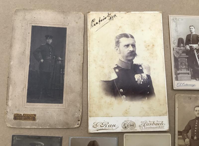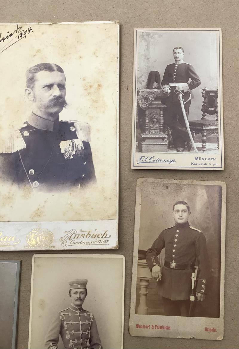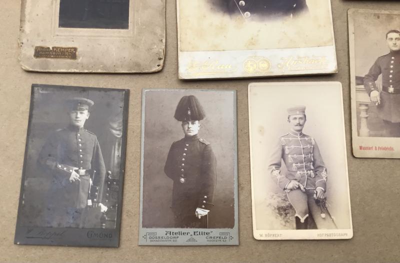 Section of 7 various CDV studio photographs of pre war soldiers in uniform c. 1890’s-1914. 105x65mm 165x105mm.