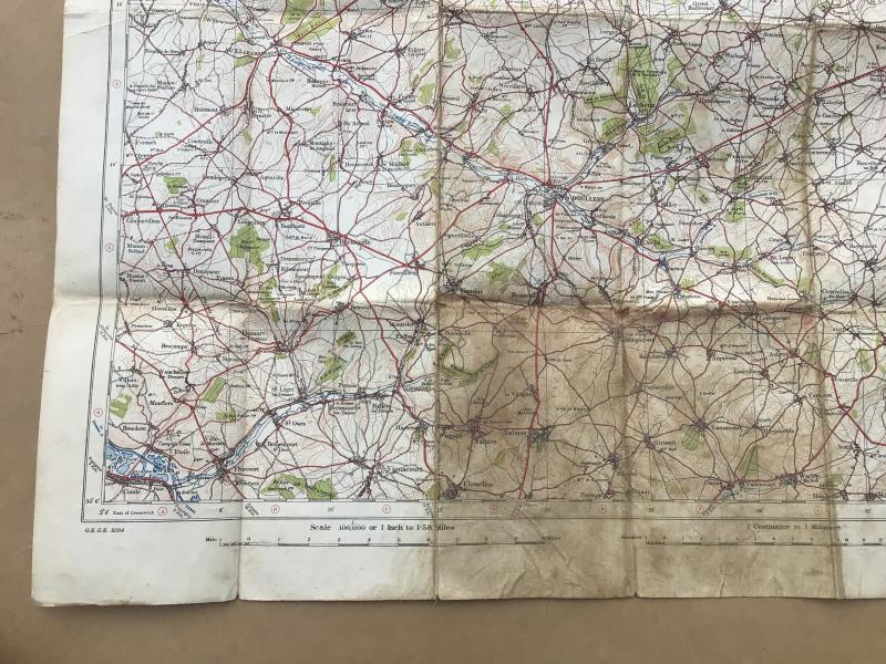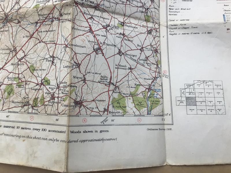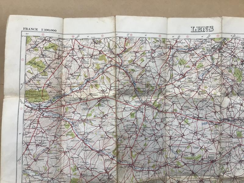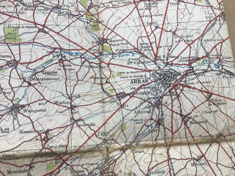 Mainly focused on the area west of Arras. 1:100000 scale. Usual fold marks and soiling. 1916 dated.
