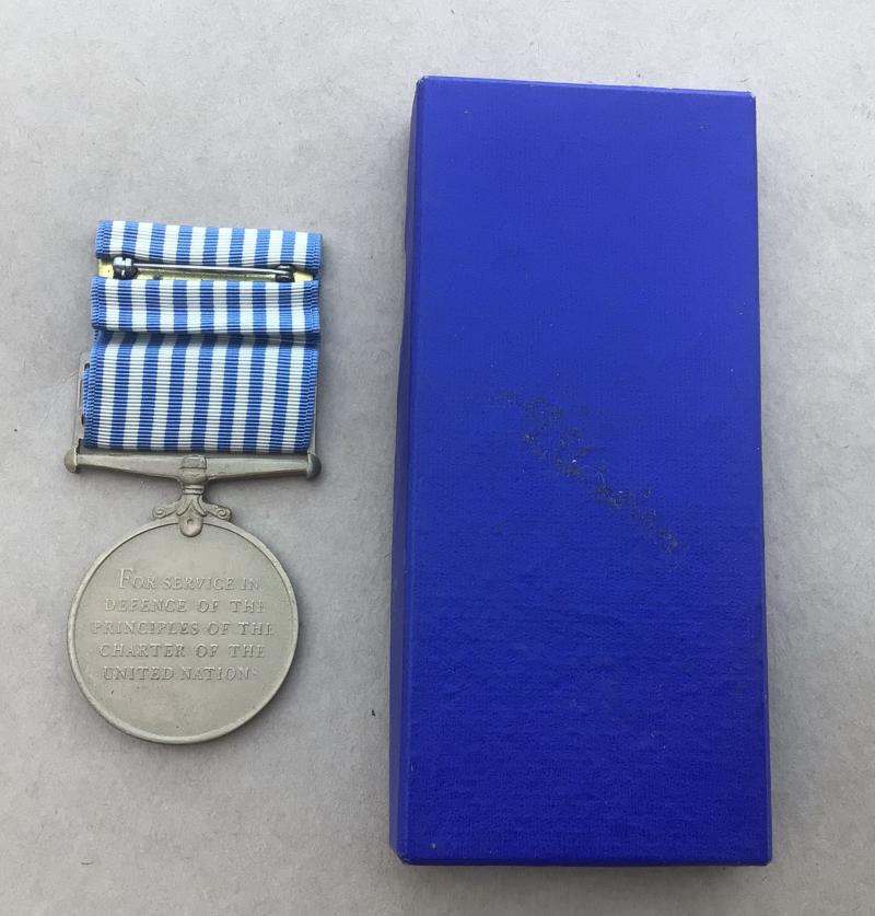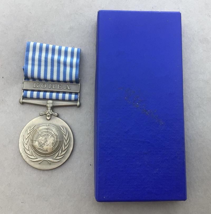 United National Korea Medal - Unnamed as issued. The issue box is a US style and marked “Specimen”. Original full size medal. Unmarked and unnamed.