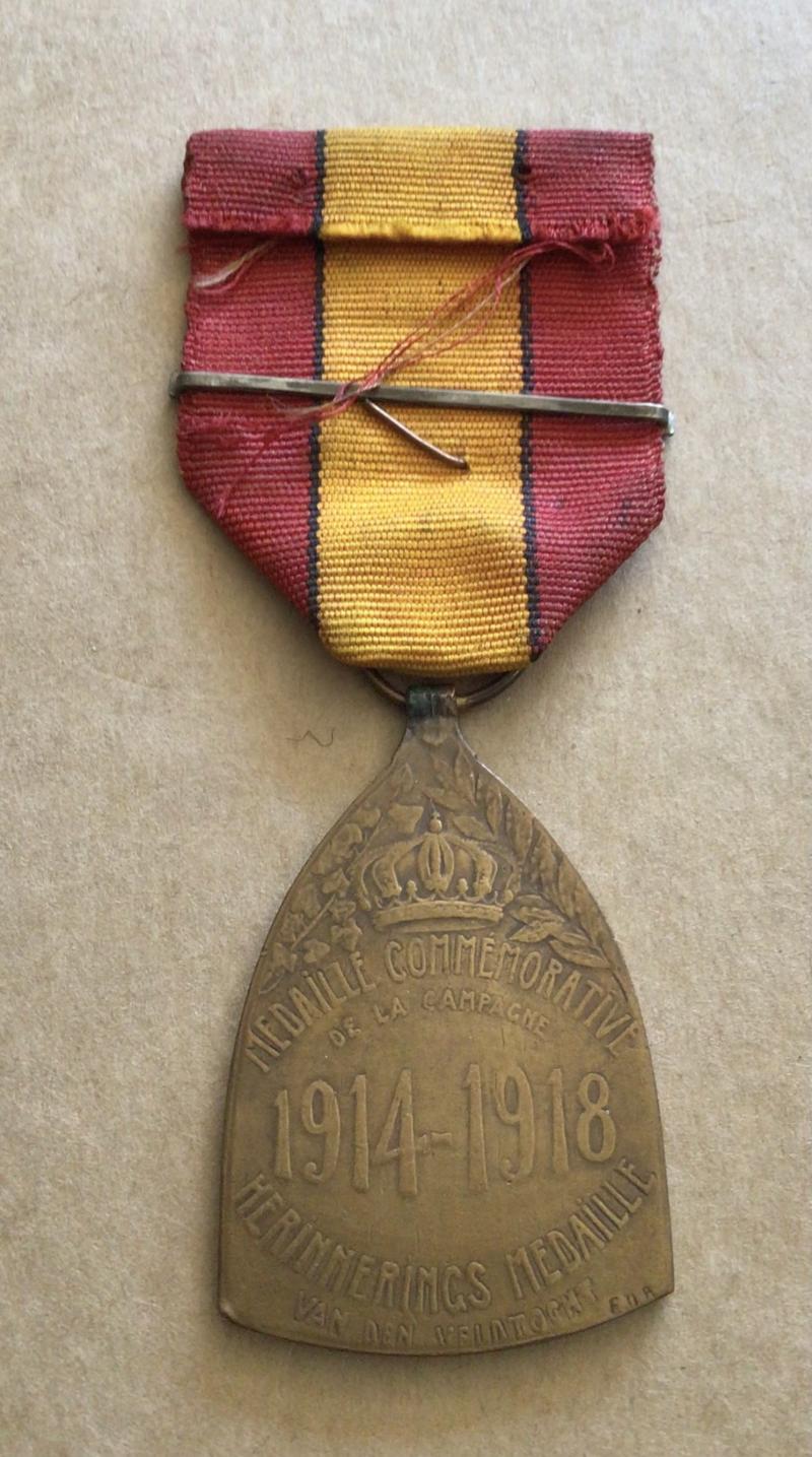 WW1 Belgium Commemorative Medal1914–1918 The Silver bar bar denoting a year at the frontand red enamelled cross for each wound received in combat Original full size medal.