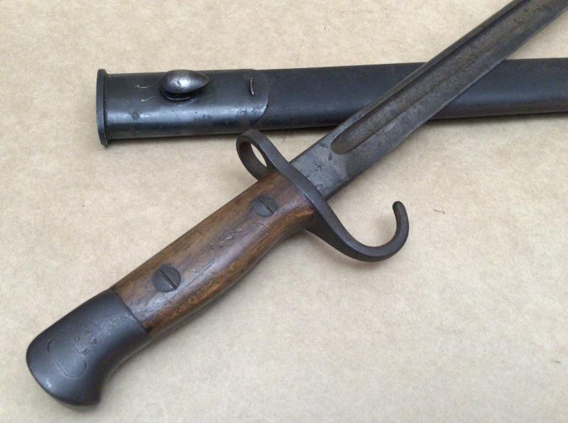 Australia WW1 Pattern 1907 Mk 1 "HOOKED QUILLION" SMLE BAYONET AND SCABBARD. (NSW Markings)