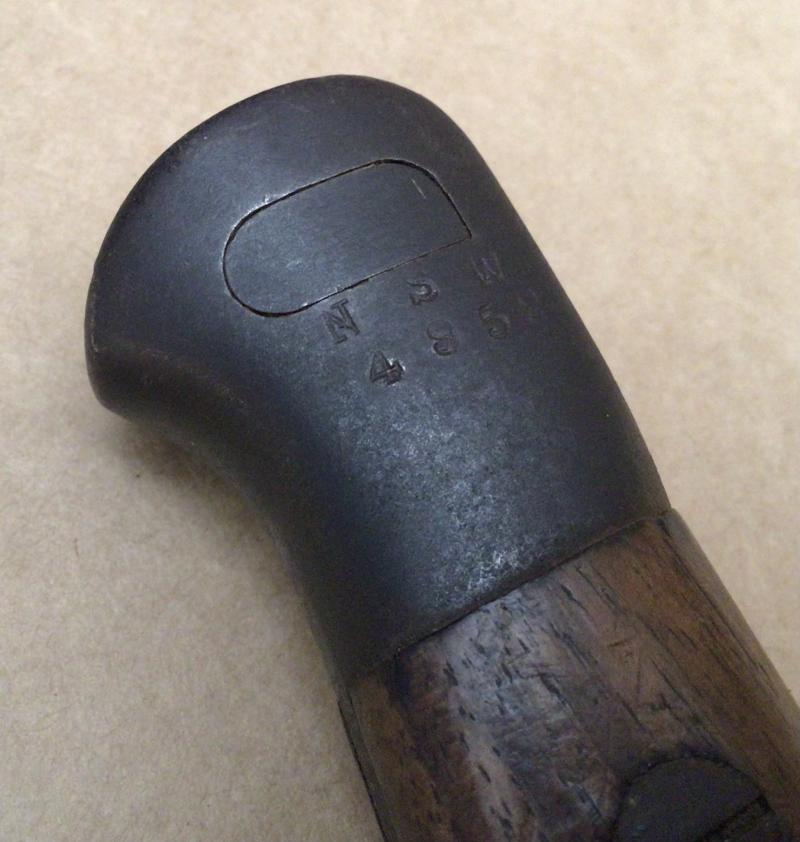 1909 dated blade by Wilkinson. The other side with British inspection and acceptance stamps. overall age tone to the blade otherwise in good condition. Original wood grips in VGC and also with acceptance stamps. Working locking stud. The Pommel stamped " NSW 4952" and the other sie stamped with sold out of service opposing broad arrows.