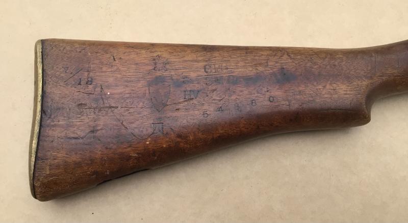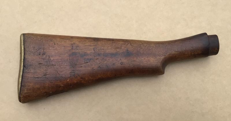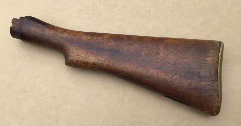 Well used MkIII rifle butt stock. Australian made has many stampings including date 1918, also marked CMF and 3rd military district ( Victoria). Has brass butt plate.