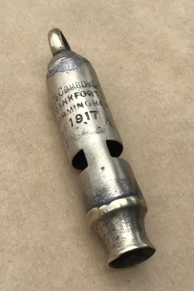Nickel brass tube whistle. Birmingham maker. Looks to have a couple of old solder repairs.