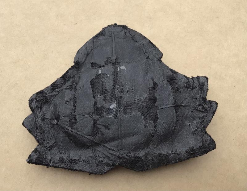 A scarce First World War period 'Royal Naval Transport Service Officer cap badge', gilt foulded anchor set on black velvet ground within a blue silk ribbed circlet "RN TRANSPORT" gold bullion wreath surround surmounted by a padded red velvet King's Crown, the reverse with waxed black hessian lining