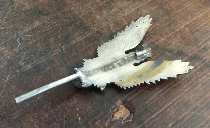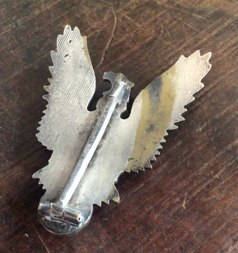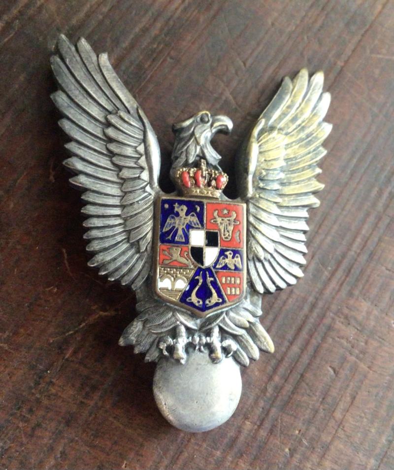 WW2 Romanian Pilot’s Badge. Silvered tombac with enamelled shield and crown centrepiece, non-magnetic, unmarked. Chip to enamel in the crown and some tone to one wing.