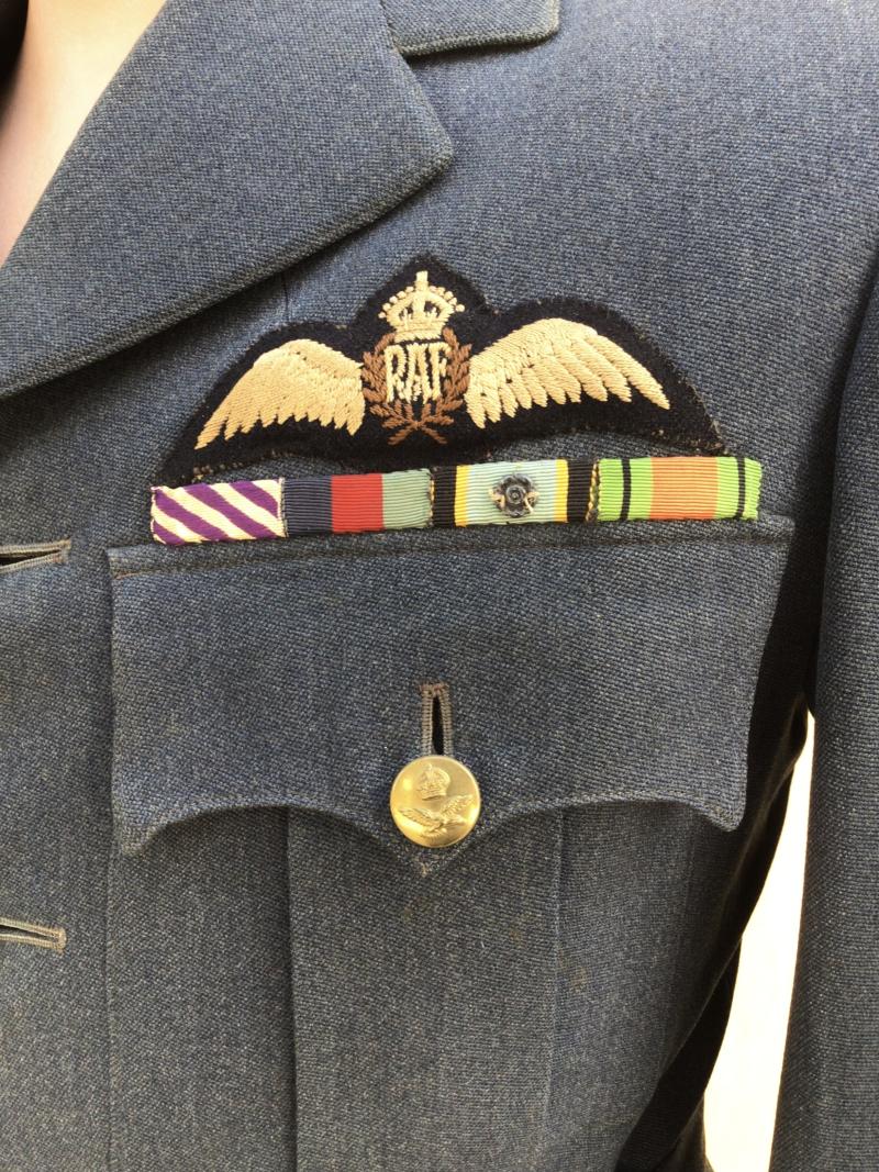 Attributed, not named, to Flying Officer William Longmore DFC. Confirmed flying with No.51 Squadron (Bomber Command) and awarded the Distinguished Flying Cross in 1944. The tunic is not named. This information was passed to me by the previous owner and no paperwork to accompany this item.