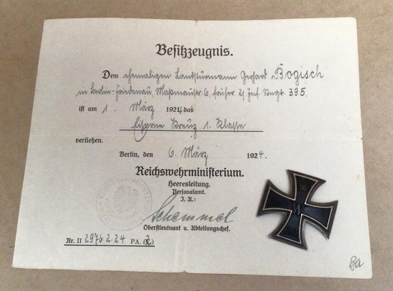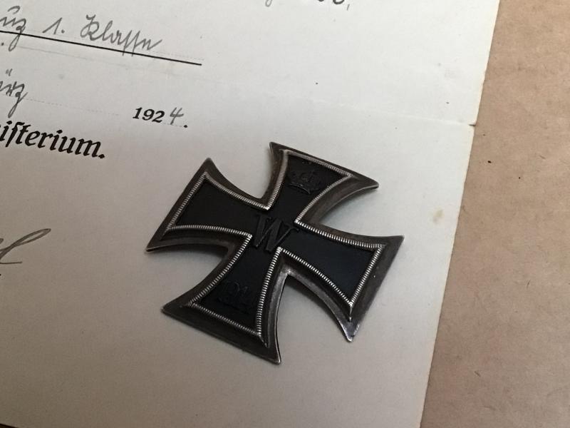 WW1 1914 Iron Cross 1st Class with Original Award Document