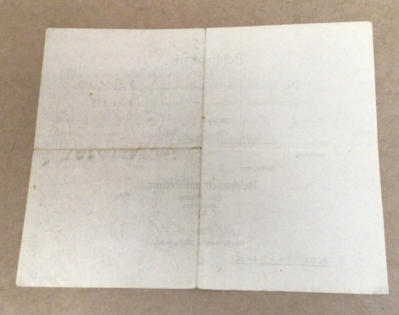 A post war back dated issue award document awarded in 1925. Infantry Regiment 395.