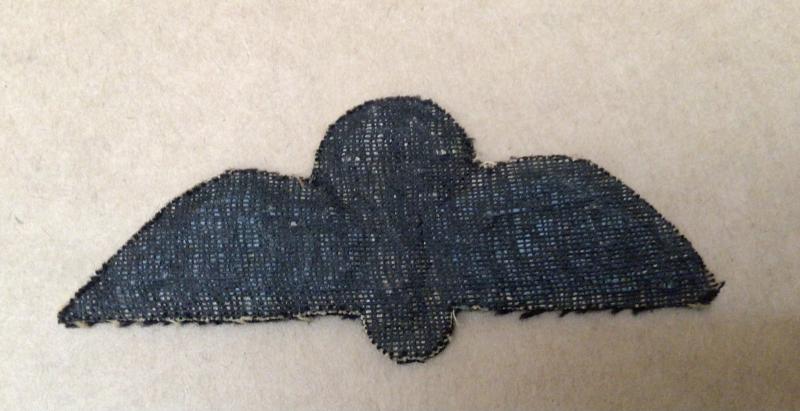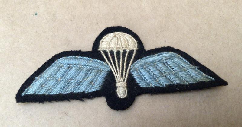 A textbook example. Heavily worsted. Full size wings. A good padded white parachute flanked by light blue wings with central fleck heavily embroidered on black cloth